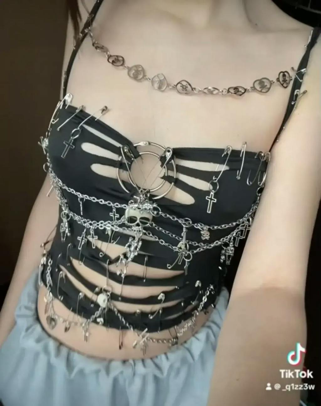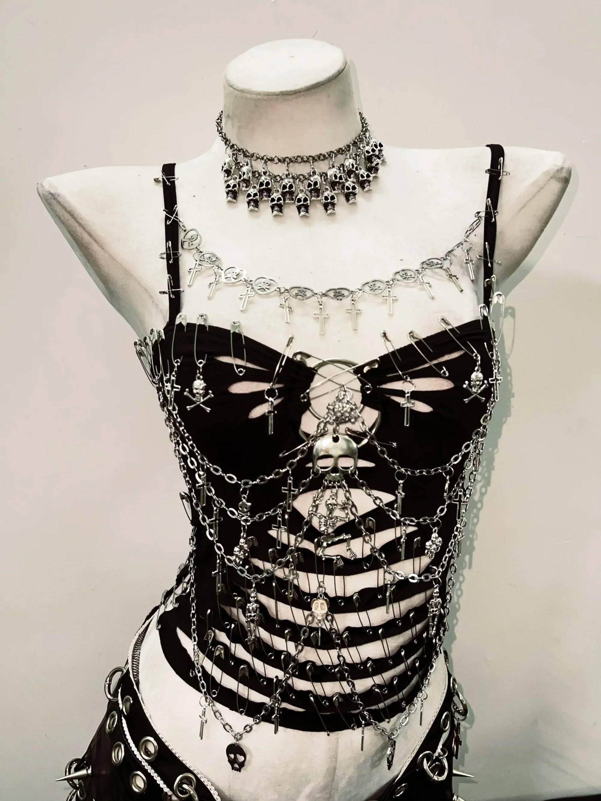 Turn heads with this Gothic Skull Bustier Tank Top — a bold fusion of punk, Y2K, and gothic aesthetics. Perfect for nights out, concerts, or alternative streetwear looks.