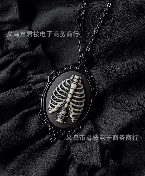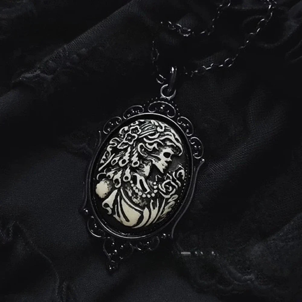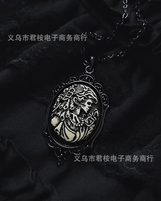 • Vintage-inspired oval pendant with a dark, romantic aesthetic