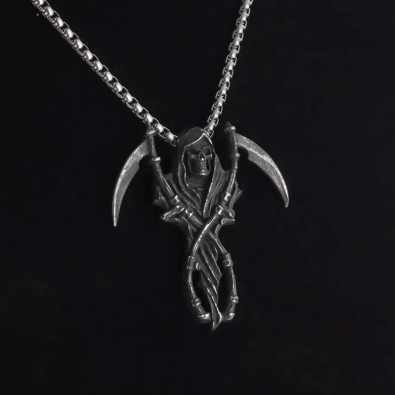Gothic Grim Reaper Scythe Pendant – Hell Demon Biker Necklace for Men