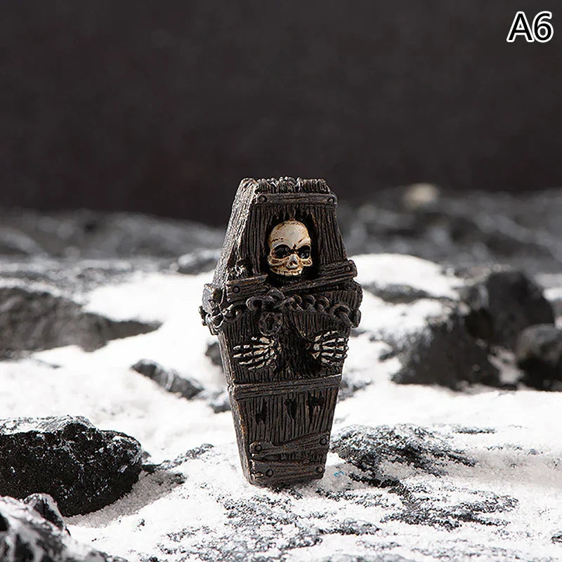 Halloween Miniature Resin Figurines – Ghost, Skull & Tombstone Decor