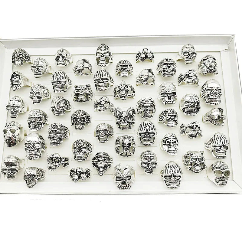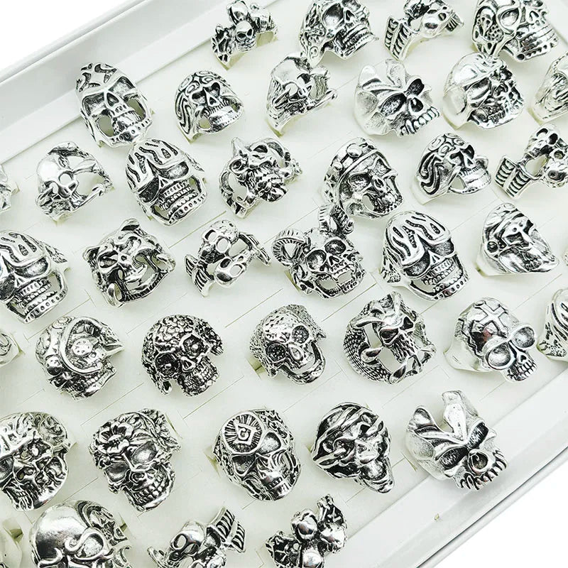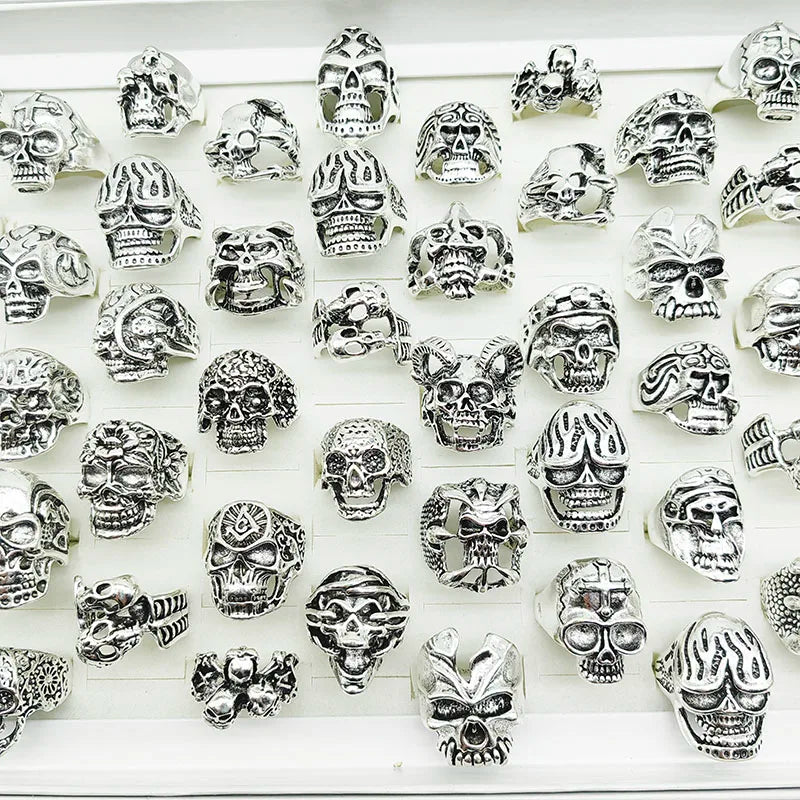 10pcs Vintage Punk Skull Rings Set – Mixed Style Alloy Jewelry for Men & Women