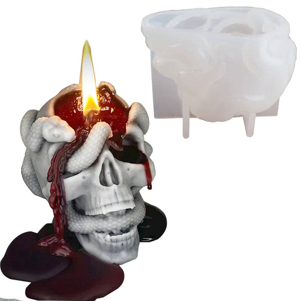 Create spine-chilling DIY pieces with this 3D Skeleton Head Silicone Mold — featuring a double snake skull design perfect for Halloween horror decorations, candles, resin art, and more.