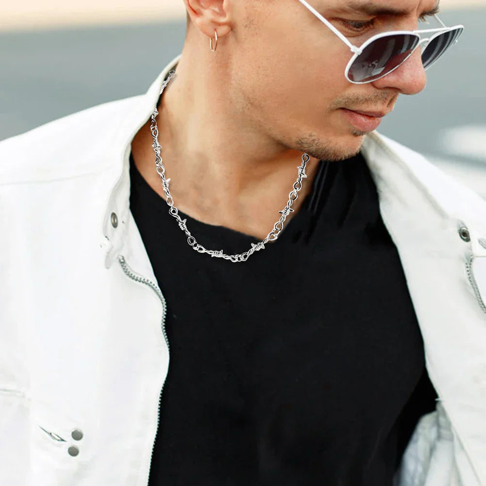 Add an edgy, rebellious touch to your look with this Thorn Necklace — a chunky gothic choker crafted from durable zinc alloy, designed to mimic sharp barbed wire for bold statement style.
