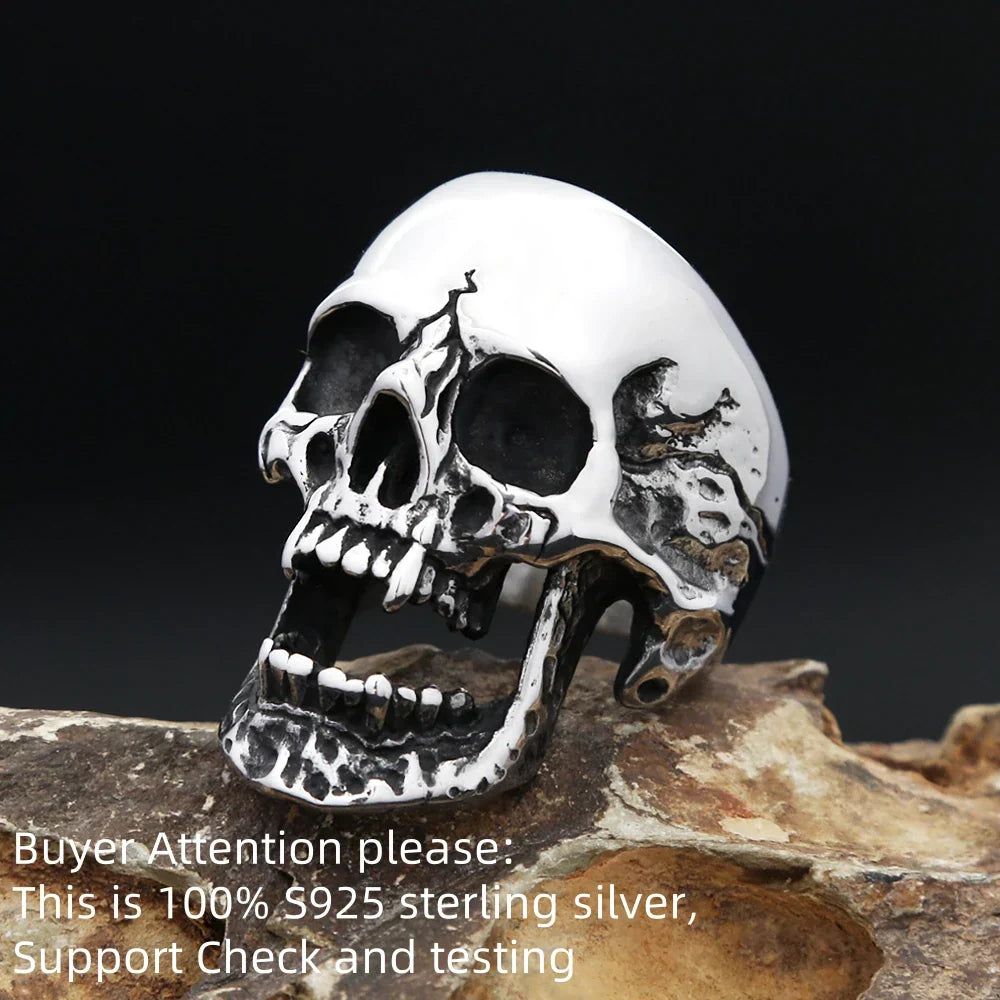 Vintage S925 Sterling Silver Skull Ring – Gothic Biker Vampire Style